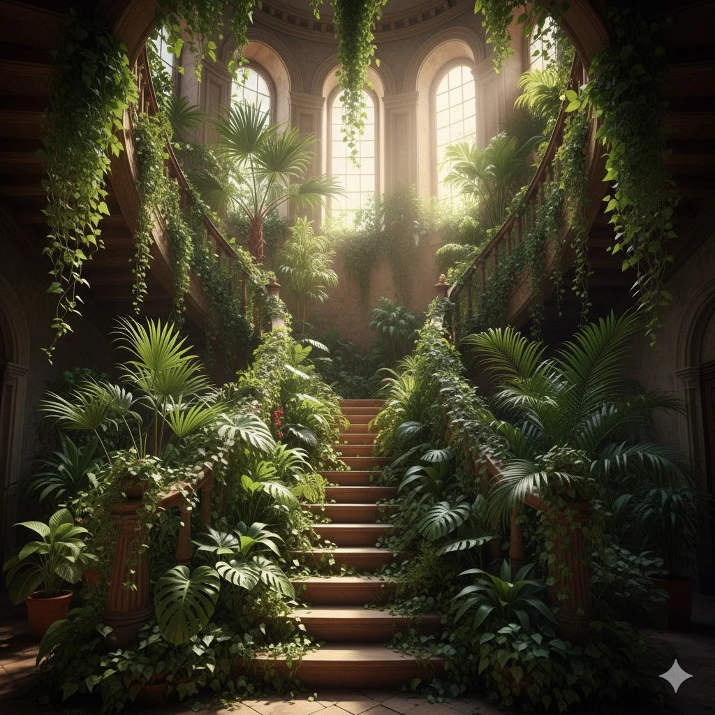 (Imagem sugerida: escada tomada por plantas — para abrir os olhos do leitor para a potência dos elementos naturais antes de começarmos)